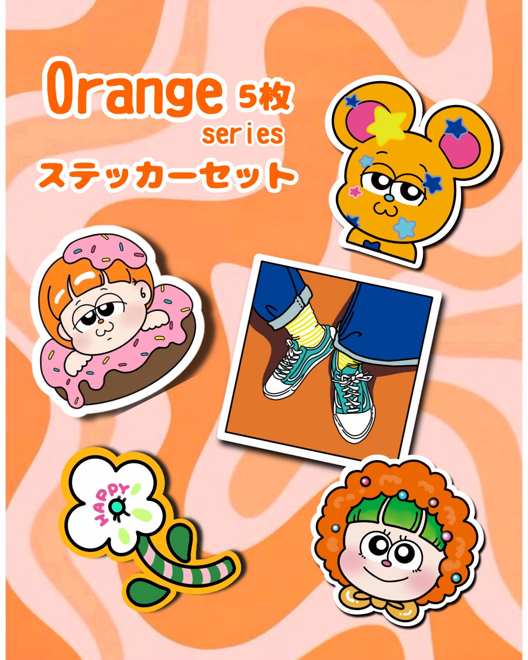 ポップでユニークなキャラクターたちを、カラーごとにまとめたステッカーセットです◎